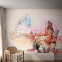 Photo Wallpaper Standard Eco - A romantic woman at a table overlooking the tower - 100x70cm - Parisian Chic - Modern wall decoration for the living room and bedroom ARTTOR