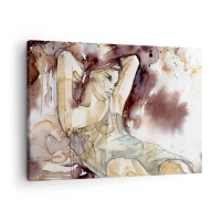 Canvas picture - Woman in artistic watercolor style with brown background - 70x50cm - In Lilly's Mood - Modern wall decoration for the living room and bedroom ARTTOR