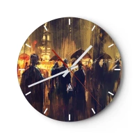 Wall clock - Clock on glass - A crowd of people under umbrellas against the backdrop of a night city - 30x30cm - Followers of the Rain - Modern wall decoration for the living room, kitchen, and bedroom ARTTOR