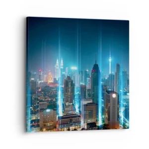 Wall clock - Clock on glass - Night city with illuminated skyscrapers - 30x30cm - Berlin Lights - Modern wall decoration for the living room, kitchen, and bedroom ARTTOR