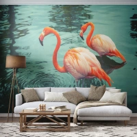 Self-Adhesive Photo Wallpaper Deluxe Sticker - We Are En Vogue Now - Flamingos, Birds, Nature - 500x350 cm