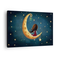 Canvas picture - A girl on the moon surrounded by stars - 70x50cm - Once Upon a Time… - Modern wall decoration for the living room and bedroom ARTTOR