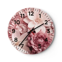 Wall clock - Clock on glass - In Pink Petals - 40x40 cm