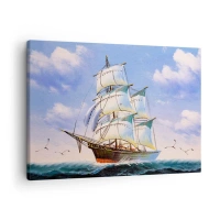 Canvas picture - A sailing ship on the open sea under a blue sky - 70x50cm - Proudly with Wind - Modern wall decoration for the living room and bedroom ARTTOR