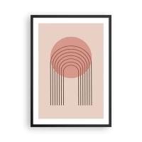 Poster in black frame - A minimalist abstraction with arcs in shades of pink and beige. - 50x70cm - Irresistible Attraction - Modern wall decoration for the living room and bedroom ARTTOR
