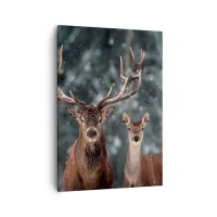 Poster in black frame - A pair of deer against the backdrop of a winter forest - 50x70cm - Master of the Forest with His Wife - Modern wall decoration for the living room and bedroom ARTTOR