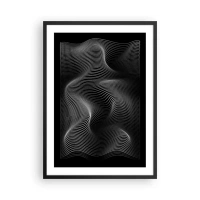 Poster in black frame - Minimalist waves in black and white - 50x70cm - Dance of the Light in Space - Modern wall decoration for the living room and bedroom ARTTOR