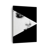 Poster in black frame - A minimalist portrait of a woman in black and white with a geometric division. - 50x70cm - Forever Uncovered - Modern wall decoration for the living room and bedroom ARTTOR