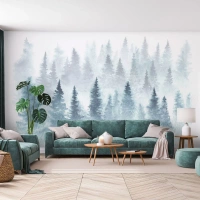 Photo Wallpaper Standard Eco - Wrapped up in a Fog - Landscape, Forest, Spruce - 300x210 cm