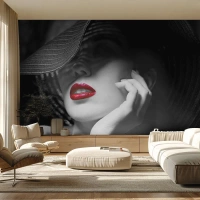 Photo Wallpaper Standard Eco - Study in Scarlet - Woman, Red lips, Fashion - 300x210 cm