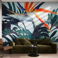 Self-Adhesive Photo Wallpaper Deluxe Sticker - Birdy Bush - Plants, Boho, Exotic - 500x350 cm