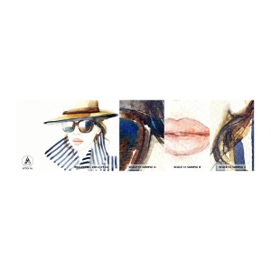 Photo Wallpaper Sample Self-Adhesive Deluxe Sticker - Tale about a Girl with a City in the Background - Abstraction, Woman, Architecture - 100x30 cm