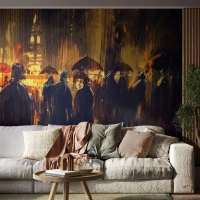 Self-Adhesive Photo Wallpaper Deluxe Sticker - Followers of the Rain - City, People, Umbrella - 150x105 cm