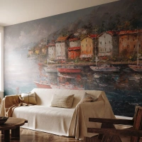 Photo Wallpaper Premium Canvas - Romantic Marina - Architecture, Port town, Sailboat - 250x175 cm