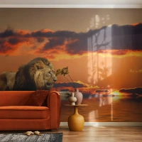 Photo Wallpaper Standard Eco - The King of Nature - Lion, Sunset, Animals - 500x350 cm