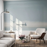 Photo Wallpaper Premium Sand - Gentleman on the Lake - Bird, Landscape, Minimalism - 350x256 cm