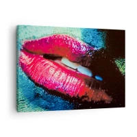 Canvas picture - Close-up of colorful, glossy lips against an artistic background - 70x50cm - Sensual and Unquiet - Modern wall decoration for the living room and bedroom ARTTOR