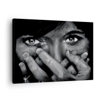 Canvas picture - Black and white portrait of a woman covering her face with her hands. - 70x50cm - I Won't Tell Who Painted It - Modern wall decoration for the living room and bedroom ARTTOR