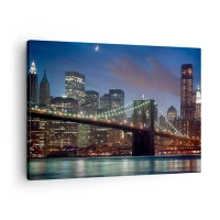 Canvas picture - New York City Bridge at Night with Illuminated Buildings - 70x50cm - Starry Night - Modern wall decoration for the living room and bedroom ARTTOR