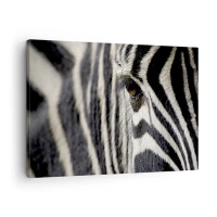 Canvas picture - Close-up of a zebra's eye with black and white stripes - 70x50cm - Striped Portrait - Modern wall decoration for the living room and bedroom ARTTOR