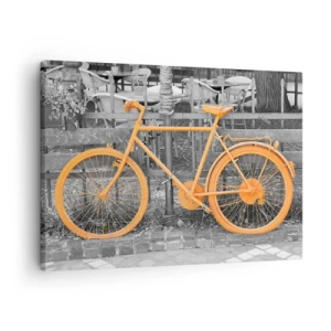 Glass picture - An illustration of an orange-painted bicycle against a black-and-white backdrop. - 70x50cm - Go and I Will Wait - Modern wall decoration for the living room and bedroom ARTTOR