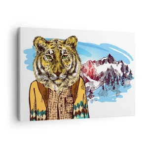 Canvas picture - A tiger in a coat against a mountain landscape - 70x50cm - Not As Wild in the Drawing - Modern wall decoration for the living room and bedroom ARTTOR