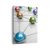 Canvas picture - Colorful balls connected by thin lines on a white background - 70x50cm - Space's Web - Modern wall decoration for the living room and bedroom ARTTOR