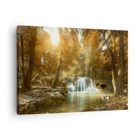 Canvas picture - Autumn landscape with a waterfall - 70x50cm - Park Cascade - Modern wall decoration for the living room and bedroom ARTTOR