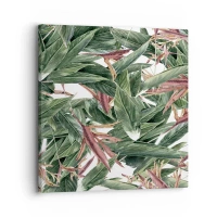 Canvas picture - A decorative leaf motif in shades of green and burgundy on a light background - 70x50cm - Emerald and Lilac Thicket - Modern wall decoration for the living room and bedroom ARTTOR