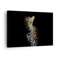 Canvas picture - A leopard on a dark background with an intense gaze - 70x50cm - Dark Beauty - Modern wall decoration for the living room and bedroom ARTTOR