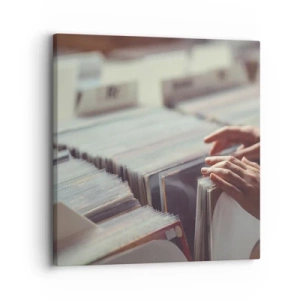 Canvas picture - Hands looking through a vinyl collection - 70x50cm - In Search of Good Vibes - Modern wall decoration for the living room and bedroom ARTTOR
