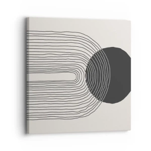 Canvas picture - Abstract pattern with lines and a black circle on a light background - 70x50cm - Trembling and Certainty - Modern wall decoration for the living room and bedroom ARTTOR