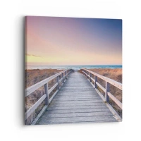 Canvas picture - A wooden jetty leading to the beach at sunset with the sky painted in pastel colors. - 70x50cm - Baltic Evening Aurora - Modern wall decoration for the living room and bedroom ARTTOR
