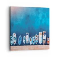 Canvas picture - Boats moored at the shore against the blue water - 70x50cm - In One Row - Modern wall decoration for the living room and bedroom ARTTOR