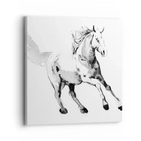 Canvas picture - Sketch of a galloping horse in shades of black and white - 70x50cm - Untamed Soul - Modern wall decoration for the living room and bedroom ARTTOR