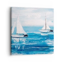 Canvas picture - Yachts on the blue sea in an artistic style - 70x50cm - With a Friend by the Side - Modern wall decoration for the living room and bedroom ARTTOR