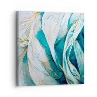 Canvas picture - Abstract blue leaves with gold details - 70x50cm - Blue Abstract with a Golden Motif - Modern wall decoration for the living room and bedroom ARTTOR
