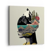 Canvas picture - Collage of a woman with a mountain landscape and flowers - 70x50cm - Woman - Always a Mystery - Modern wall decoration for the living room and bedroom ARTTOR
