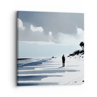 Canvas picture - A lone figure walking on an empty beach - 70x50cm - All Alone - Modern wall decoration for the living room and bedroom ARTTOR