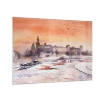Glass picture - Sunset over the royal castle and the river in winter - 70x50cm - Royal Sunset - Modern wall decoration for the living room and bedroom ARTTOR